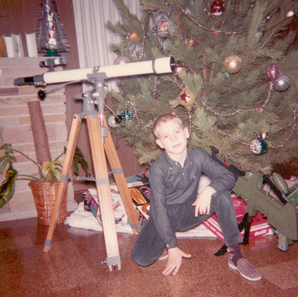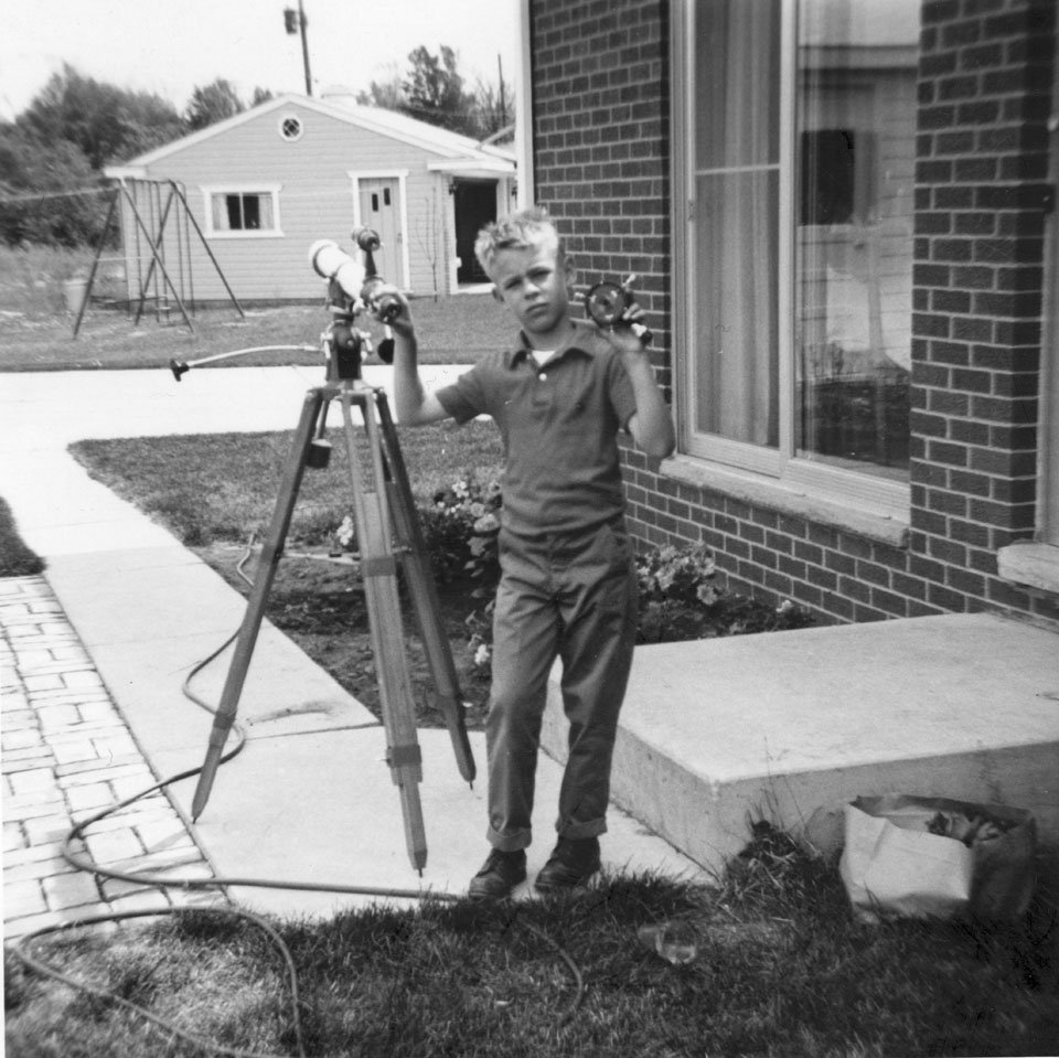I grew up in a suburb of Detroit. As a youngster I was interested in astronomy and astrophotography. At the age of 8, my parents presented me with a 3" Japanese refractor purchased from a local department store. I made my first foray into astrophotography that summer with a Lafayette Electronics camera adaptor (see below right) and a Brownie camera. With my first usable image (surprisingly it was in focus), I had convinced myself that I had photographed the rocket nozzle of an Atlas booster. I showed this prized image to everyone who would take time to look and listen. Later that week, my father broke the bad news to me that my photograph was not of a rocket nozzle, but that of a "bell-shaped" insulator from a telephone line.